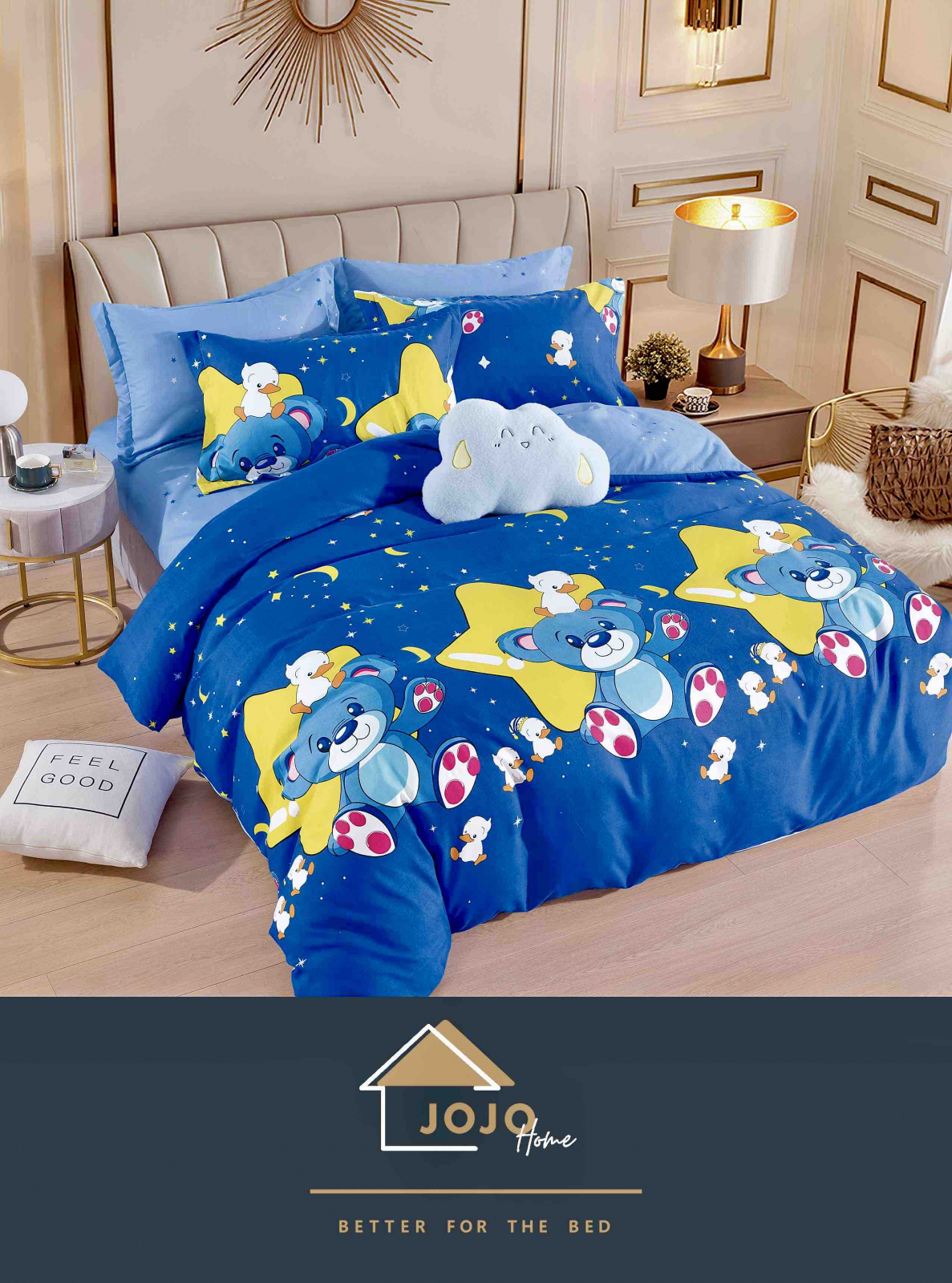 Transformă dormitorul celui mic într-un colț de poveste cu această lenjerie de pat Jojo Home, cu imprimeu vesel cu ursuleț albastru și steluțe galbene. Ideală pentru copii sau bebeluși, această lenjerie creează o atmosferă caldă și relaxantă, perfectă pentru un somn liniștit și vise dulci. 🌙💫